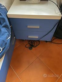 Cameretta composta da boiserie (Alt. c.a. cm.230 x largh.cm.210) con mensole, letto singolo (cm.90xcm.198) con letto aggiuntivo sottostante con relativo materasso e comodino (cm.46xcm.46). Vendo causa trasloco. Disponibile a Marzo.