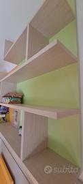 Pannello (370 cm) e mensole (h 29 x 22 cm) con 2 cubotti