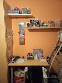 Cameretta con letti a castello, 3 posti+ scrivania ed armadio 4 ante + 6 mensole porta libri oggetti. Prezzo trattabile
