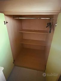 Cameretta con letto a castello, dotato di armadio. (Lunghezza totale 340cm, altezza massima 164cm, larghezza 90cm). Scrivania con cassettiera. (Lunghezza 150cm, altezza 75, larghezza 46 cm). Smontaggio e trasporto a carico dell’acquirente.