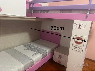Cameretta per ragazzi con letti a castello, scala esterna con cassetti, componibile, scrivania. In ottimo stato. Smontata e pronta per il ritiro. Disponibili anche 2 materassi acquistati pochi mesi fa , pari al nuovo. Nelle foto sono riportate le misure. Vendo ad euro 500€.