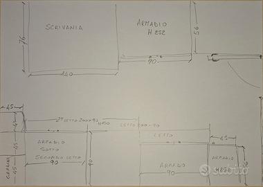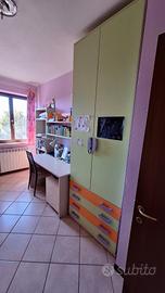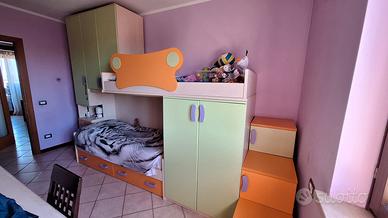 Bella cameretta di qualità, non di mobilificio di convenienza, con letto a castello, materasso superiore mai usato. Armadi ampi e spaziosi. Le misure sono riportate nella foto allegata. Qualche piccolo segno su scrivania e bordo letto, è comunque una cameretta usata da una bambina.