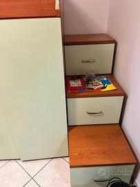 letto a castello: inferiore singolo con cassetti e contenitori