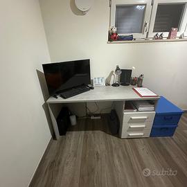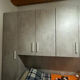 Vendesi Cameretta a ponte con letto singolo e secondo letto estraibile. Composta da quattro moduli di cui due a colonna laterali con cassetti sull’anta sinistra e armadio a ponte a quattro ante. Inclusa anche la scrivania con cassetti. Misure della Cameretta: lunghezza 294 cm; profondità 53 cm: altezza 246 cm. Misure del letto: lunghezza 200 cm; larghezza 90 cm; altezza standard. Misure scrivania: lunghezza 150 cm; larghezza 60 cm; altezza 72 cm. Non compresa la sedia e non compresi i materassi. Sì vende per rinnovo abitazione.