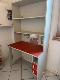 Cameretta completa, con letto e materasso praticamente nuovo, completo di comodino con luce incorporata, abbinata a scrivania con libreria e piccolo scrittoino a ribalta e sedia. Misure: Letto+Comodino: 147x225 Scrivania+Libreria: 100x60x187(h) Scrittoino+Sedia: 50x42