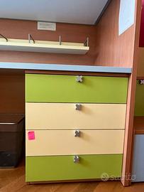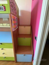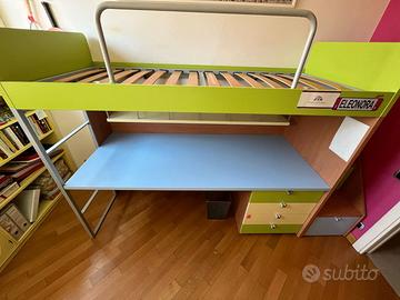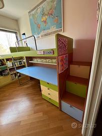 Composizione cameretta con letto soppalco "Battistella" completa di meccanismo inclinabile, scaletta e mensola sottoponte.