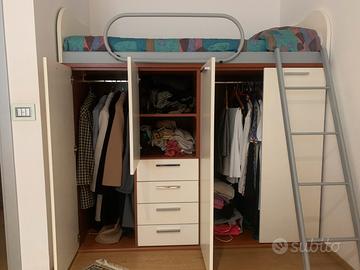 Vendesi armadio con letto a soppalco, scrivania + sedia. Materasso, scala, paratia in regalo!