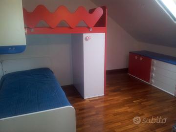 cameretta con letto a soppalco letto con 2 cassettoni 1 anta profondità 90cm e 2 ante armadio