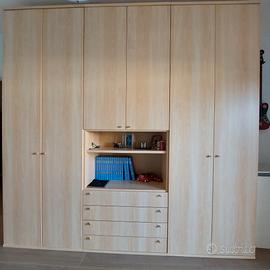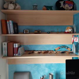 Vendo, per inutilizzo, cameretta completa marca colombini, color faggio, usata poco e ben tenuta. Armadio 6 ante, scrivania, mensole, comodino, 2 testiere letto, una ad una piazza e mezzo, color cemento (sempre colombini), in aggiunta e non in foto, cedo un'altra singola di color faggio. Ritiro e smontaggio in sede.