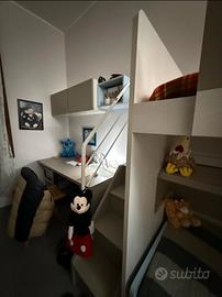 Si vende cameretta completa, dotata di letto a castello con struttura apribile per agevolare l'accesso al letto superiore, scala attrezzata con cassetti integrati, scrivania, pensili sovrastanti,