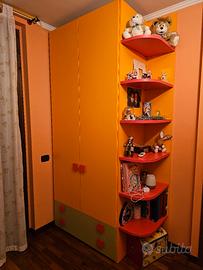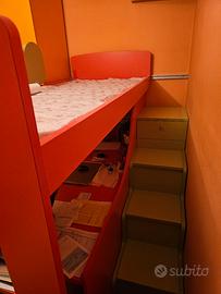 Cameretta con letto a castello, comprensiva di cassettiera, settimino, armadio 2 ante e scrivania.