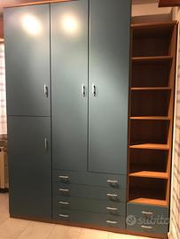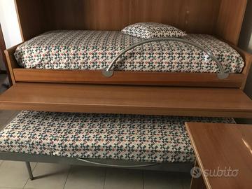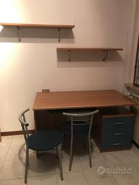 Vendo cameretta con armadio a ponte, scrivania a scomparsa, secondo armadio molto capiente con cassettiera, scrivania con cassettiera e due sedie a completare due mensole PREZZO TRATTABILE