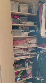 Cameretta in buone condizioni con armadio con cabina armadio, comodino, letto singolo e scrivania.