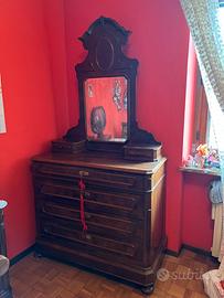 COMODINO CON PIANO IN MARMO E SPECCHIERA: