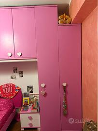 Cameretta da bambina (berti mobili) completa di : armadio a ponte, comodino, letto, scrivania, sedia per scrivania .