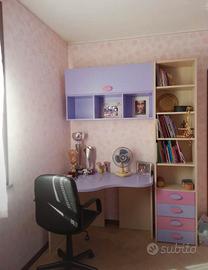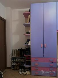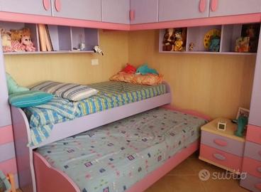 Vendesi camera da bambina su misura nei colori lilla e rosa, in ottime condizioni, completa e molto funzionale. La cameretta comprende: armadi su misura molto capienti con manopole ovali, libreria e vari scompartimenti, scrivania ampia, comodino coordinato, doppio letto a cassetto (letto inferiore estraibile).