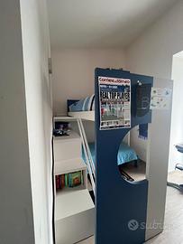 Cameretta marca Doimo acquistata nel 2019 composta da 2 letti di cui uno a soppalco, settimanale, scrivania e mensole. L’armadio non è della Doimo ed è acquistabile a parte ( €150,00). La cameretta sarà smontata durante le festività Natalizie in quanto sarà montata una nuova camera.
