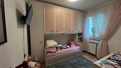 Sotto al divano, che in un attimo si trasforma in comodo letto, c'è un cassettone che in poche mosse diventa un'ulteriore postazione notte: un'ottima soluzione salvaspazio. L'armadio comprende 5 tubi e 1 ripiano posizionato nell'anta lunga. Materassi sono compresi nel prezzo.