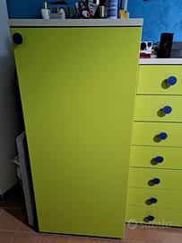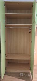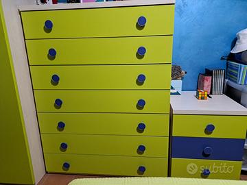 Vendesi cameretta da letto completa in ottime condizioni sia in blocco che singolarmente. Nr. 2 lettini con rete, materasso e testiera standard; Nr.1 comodino sfandard; Nr.1 cassettiera con 7 cassetti 0,46x0.90x1.20; Nr. 1 armadio a ponte 0.58x3.40x2.30 + mobile armadio separato 0.60x0.60x1.35 Nr.1 scrivania estendibile e comodino 0.72x1.40x0.78 + libreria da parete 0.28x1.38x0.53
