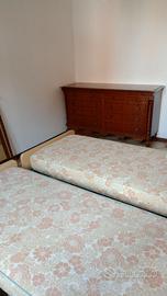Due letti singoli con materassi,un settimo, un comò,uno specchio
