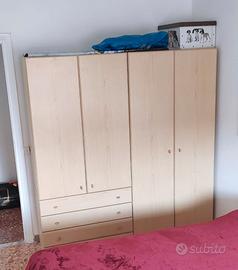 - ARMADIO (L 182 X P59,5 X H198, DI CUI 2 ANTE H198 + 2 H127 CON 4 CASSETTI L90 SOTTOSTANTI. ALL'INTERNO 2 ASTE APPENDIABITI + 2 RIPIANO PER ABITI IN AGGIUNTA AI CASSETTI)