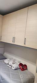 Armadiatura a ponte e libreria sono in condizioni perfetti senza segni come nuova, la scrivania sul piano ha qualche segnetto Acquistata dal mobilificio, prodotto di qualità, con spessore ante 2 cm e divisori da 3cm. I letti sono in basso e allineati e non più uno sopra l' altro.