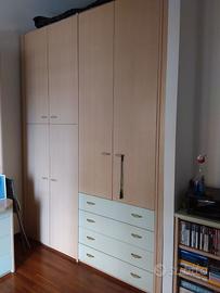 Cameretta per ragazzi in ottime condizioni, composta da : una libreria con penisola (altezza 220cm, lunghezza 2 m, profondità non fissa), armadio 4 stagioni (altezza 2,78, profondità 62cm, larghezza 2 m), due letti (misure standard 2 m) di cui uno estraibile con comodino, mobiletto a giorno porta tv e piccola libreria. Se occorre il lampadario coordinato alla cameretta nei colori. Il tutto è visionabile in qualunque momento. Zona San Giovanni