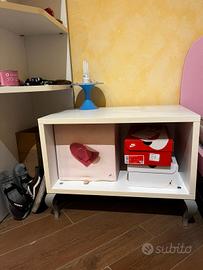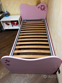 La cameretta è usata ma è in perfette condizioni. È composta da un letto singolo, da un armadio spazioso con cassetti, appendiabiti e mensole, da un comodino, una scrivania ampia, una sedia, e uno specchio da appendere.