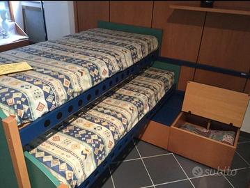 - 2 Letti sovrapponibili e scorrevoli su boiserie comprensivi di pianale legno e materasso H18