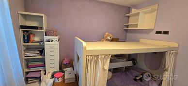 Vendo cameretta Doimo City line acquistata nel 2011 ( costo di acquisto 6000 € ) in ottimo stato di manutenzione adatto a bambina - ragazzina... la particolarità è la grande scrivania posta sopra il letto alla quale si accede attraverso una scaletta a " cassettoni " come da foto... disponibile per presa visione in quanto è da smontare.... prezzo trattabile.... nelle foto anche quelle da catalogo.