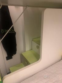 Letto sopra montato su binario per spostarlo sopra la scala quando non viene usato o semplicemente durante il giorno..