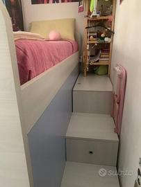 Cameretta a castello angolare con armadio a due ante e scale con contenitori. IL LETTO INFERIORE NON E' INCLUSO