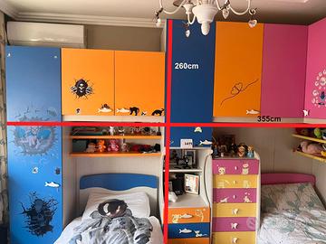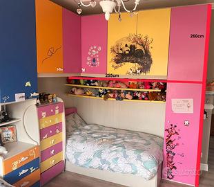 La cameretta è tenuta con cura ed è realizzata con materiali robusti e facili da pulire. È la soluzione ideale per chi vuole arredare una stanza completa senza spendere una fortuna in mobili su misura.