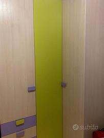 Vendo cameretta Colombini doppia in ottime condizioni, ideale per due bambine, completa di: letto a castello, armadio, libreria, scrivania, sedia abbinata. Colori moderni e vivaci: verde e viola, con dettagli in legno naturale.