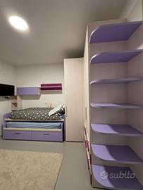 👉 Vendita in blocco per cambio arredamento Vendo cameretta completa marca Stosa, acquistata da Nuova Arredamenti, in ottime condizioni, tenuta con cura. La cameretta è composta da: Armadio angolare molto capiente, con illuminazione interna, ripiani e doppia appendiabiti Letto singolo con secondo letto estraibile + cassetti contenitore 2 materassi inclusi Scrivania ampia Libreria e pensili coordinati Colore: bianco con inserti viola/fucsia Età: circa 7 anni Struttura solida, cassetti e ante perfettamente funzionanti. 👉 Smontaggio e trasporto a carico dell’acquirente. 💰 Prezzo: 900 € trattabili Disponibile per visione. Per info o altre foto, contattami in privato.