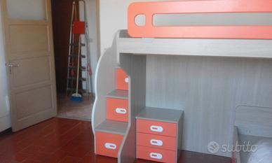 cameretta doppia a ponte con scaletta che fubge da scarpiera. non sono inclusi I materassi. La cameretta è semismontata e disponibile immediatamente. Presenta una maniglia danneggiata e qualche piccolo segno di usura. Il prezzo è trattabile.
