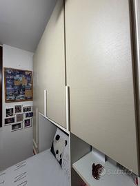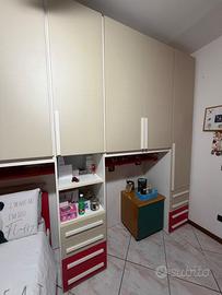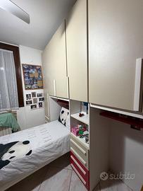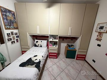 Vendesi cameretta in ottime condizioni comprensiva di: 1. Armadio lunghezza 350cm altezza 350cm profondità 80cm. Colore beige e rosso 2. Due letti a una piazza misure standard materassi inclusi PREZZO TRATTABILE - RITIRO A MANO (smontato)
