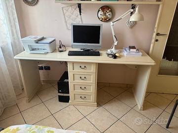 Cameretta doppio ponte effetto legno chiaro, con due posti letto singoli, due colonne con cassetti, sei ante