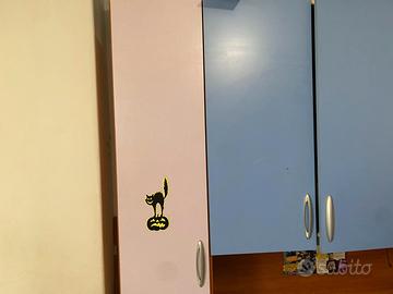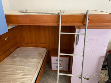 come da foto vendo cameretta per bambini a castello ad angolo con armadio materassi e comodino inclusi