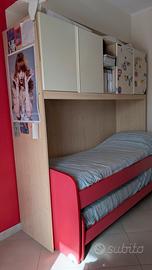 Vendo per cambio camera un set cameretta coordinata anno 2008, Mercatone Uno. Finiture in legno chiaro, legno laccato colore crema e legno laccato color rosso ciliegia, composta da: