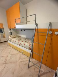 Causa cambio camera, vendo cameretta con due posti letto usata (da una sola bambina) ma in buono stato con scaletta e ringhiera in ferro. Letto contenitore con due cassettoni.