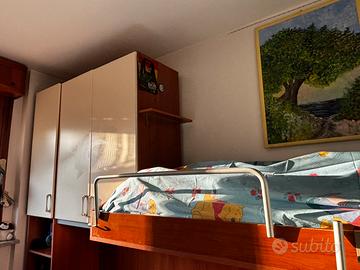 Vendo cameretta a castello + mobili in buone condizioni, ideale sia per bambini/ragazzi sia per adulti (in quanto sono colori molto basici e generici). Il mobilio è solido e funzionale, con struttura pensata per ottimizzare lo spazio. Composizione: - Letto a castello superiore incluso (parte integrante del mobilio) - Struttura completa della cameretta come da foto/desrizione Nota importante: - Il letto inferiore (rete e materasso da una piazza e mezza) NON è incluso nella vendita - Smontaggio e trasporto sono a carico dell’acquirente Dettagli: - Dimensioni: 2,40m (altezza) x 3,45m (lunghezza) - Colore: color legno e bianco panna - Materiale: legno Prezzo: 100€ Ritiro: Rescaldina, 20027, provincia di Milano Disponibilità: A PARTIRE DA FEBBRAIO! Per informazioni o per visionare la cameretta, contattatemi rispondendo a questo annuncio ⬇️