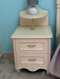 Vendo cameretta in legno massello, colore bianco patinato con sovracolore rosa, della prestigiosa marca Ferretti & Ferretti modello Happy night. La cameretta comprende un armadio a 4 ante con cassettiera interna, un letto con testata e pediera sagomata con colonnine, un comodino, una scrivania con cassetto estraibile per tastiera, una libreria con 5 ripiani e 2 cassetti, 3 mensole. Contattare solo se realmente interessati. Prezzo impegnativo