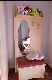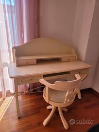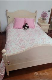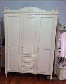 vendo cameretta Ferretti in legno, in ottime condizioni , completa di tutto. È composta da armadio, letto una piazza e mezza con baldacchino smontabile, panchina, specchiera con panca, scrivania,sedia, comodino, bastone e tenda, lampadario e lampada di ottima qualità in coordinato, cuscini arredo, copriletto e tende del baldacchino.