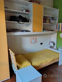 Cameretta completa di letto, scrivania, comodino, ponte con armadio e mensole. Materiali di ottima qualità e condizioni pari al nuovo. Da ritirare sul posto smontata.