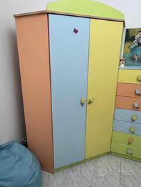 Armadio angolare colorato con settimino e culla in buone condizioni.