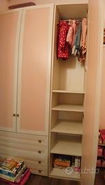 - Armadio color nuvola frassino/rosa antico completo di libreria/1 pensile a 2 ante/1 pensile alto/4 cassetti misure cm 188.5x59.5x260