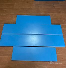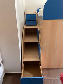 RITIRO A CARICO DEL VENDITORE PER LE SEGUENTI REGIONI: CAMPANIA LAZIO MOLISE Cameretta Golf Colombini in ottime condizioni, colori frassino/azzurro, ideale per bambini e ragazzi. Salvaspazio e funzionale, con tutti i componenti inclusi (tranne materassi e armadio). Smontaggio a carico del venditore, ritiro a carico del venditori nelle seguenti regioni: Campania, Lazio, Molise. Componenti principali: Letto superiore a soppalco con testata e pediera azzurre sagomate (materasso escluso) 2 barre anti-caduta per il letto superiore Letto inferiore con rete a doghe e 2 cassetti contenitori (materasso escluso) Scaletta con 2 contenitori ad ante azzurre + cassetto Comodino frassino con 3 cassetti azzurri Libreria 10 scomparti aperti + 4 ante azzurre Mensole azzurre: 2 da 190 cm, 2 da 142 cm Scrivania frassino con piedi in alluminio (90×75 cm) Prezzo Trattabile e ritiro a mano a Piedimonte Matese (CE).