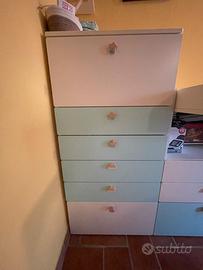 Per avere maggiori foto e info contattarmi. Ritiro a carico dell’acquirente, smontaggio anche a carico nostro. Vendo due armadi ikea smastad alti, capienti, con maniglie comprate da me a parte. In ottime condzioni. Vendo movile fasciatoio che puo diventare anche scrivania, cresce con il bimbo. Tutto visionabile sul sito ikea: SMASTAD. E poi vendo anche cassettiera. È tutto componibile, cassetti e ante potete spostarle a voatro gusto. Tutto 700€ trattabili. Vendo anche singolarmente. Contattarmi in privato.