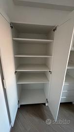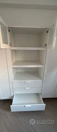 Vendo cameretta IKEA acquistata a fine 2021, composta da: ARMADIO IKEA PLATSA Struttura modulare, come visibile in foto. Include: vari moduli con ripiani regolabili una parte con tubo appendiabiti modulo centrale con 3 cassetti spaziosi due ante superiori con vetro Condizioni ottime, utilizzato con cura. Perfetto come armadio per cameretta, stanza ospiti o studio. SCRIVANIA IKEA BEKANT Scrivania angolare, piano scuro e gambe bianche. Robusta, ideale per studio o smart working. Mostrata in foto con setup PC (non incluso). CASSETTIERA IKEA (3 cassetti) Cassettiera bianca a 3 cassetti, condizioni ottime. Note: Ritiro e smontaggio a carico dell’acquirente Possibilità di visionare senza impegno Si considerano anche proposte separate per: - scrivania + cassettiera (230 €) - armadio (220 €)